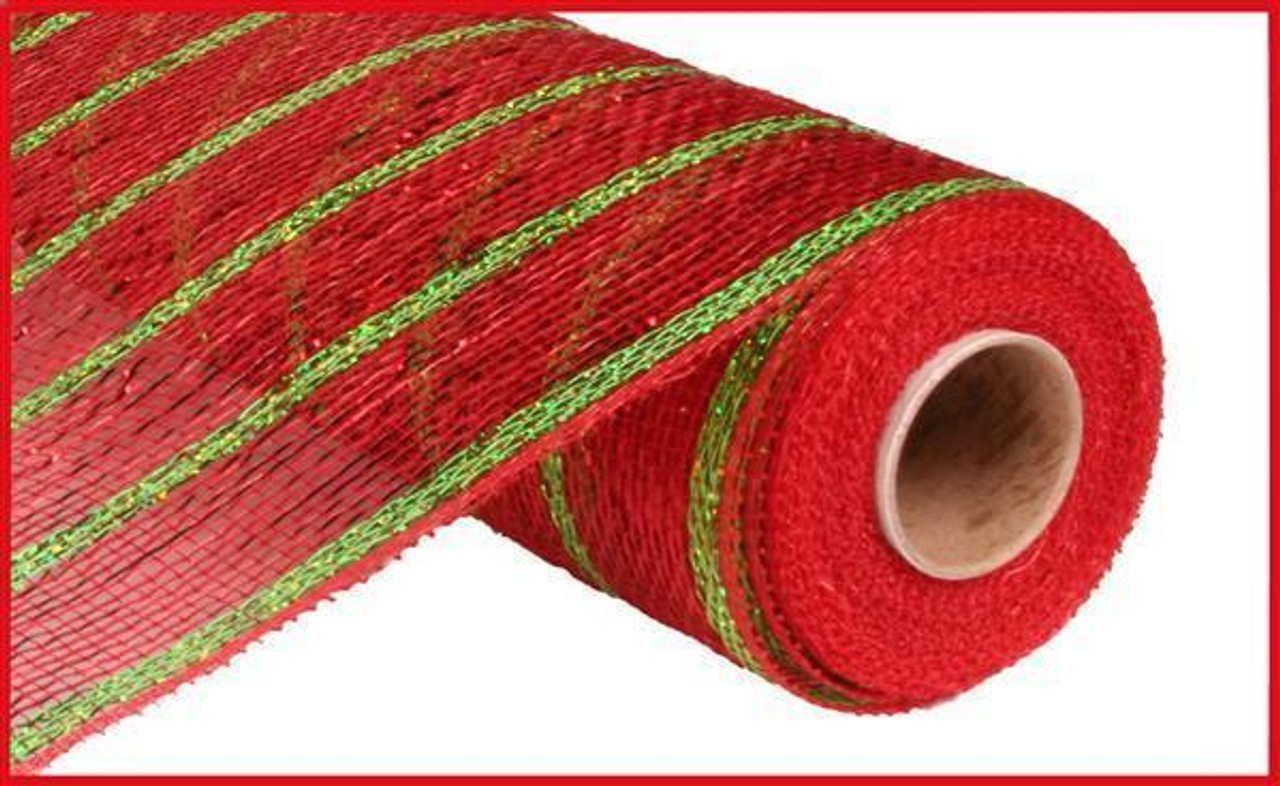Deco Mesh - 10" x 10yd - Stripe Green/Red Metallic